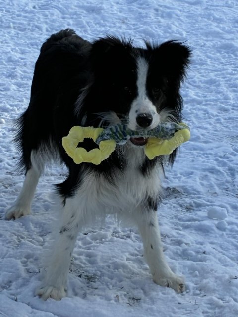 Hun er tillidsfuld overfor alle og har et sublimt hundesprog og indgår rigtig fint i flokken herhjemme.